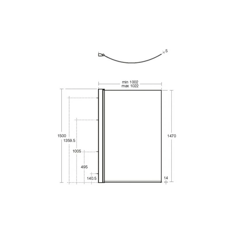 Concept Shower Bath Screen with clear glass in silver finish