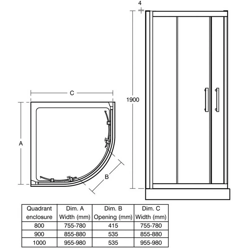 Synergy Quadrant 1000mm shower enclosure, IdealClean clear glass