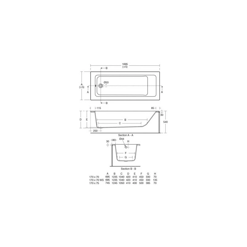Tempo Cube 170 x 70cm rectangular bath, no tapholes