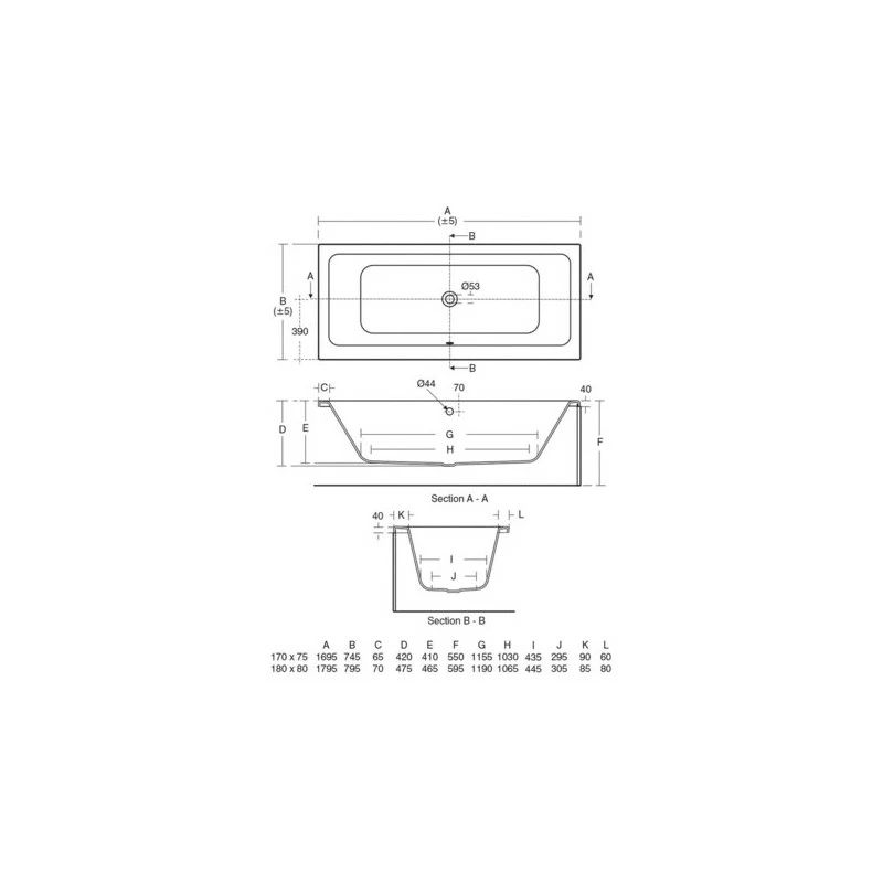 Tempo Cube 170 x 75cm Double Ended Bath, no tapholes