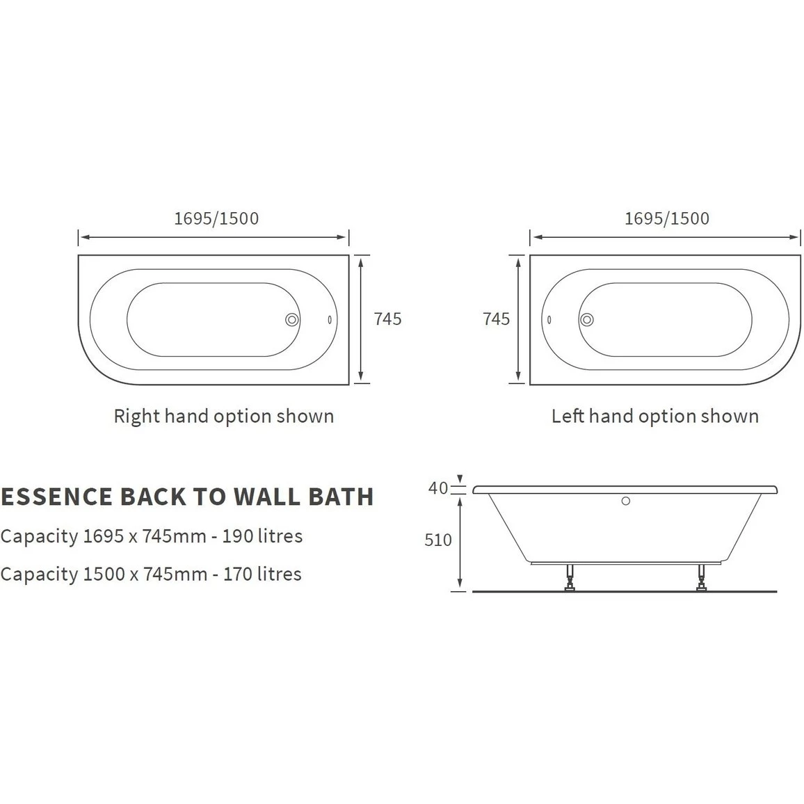 Essence 1500x745mm Back To Wall No Taphole Left Hand Bath
