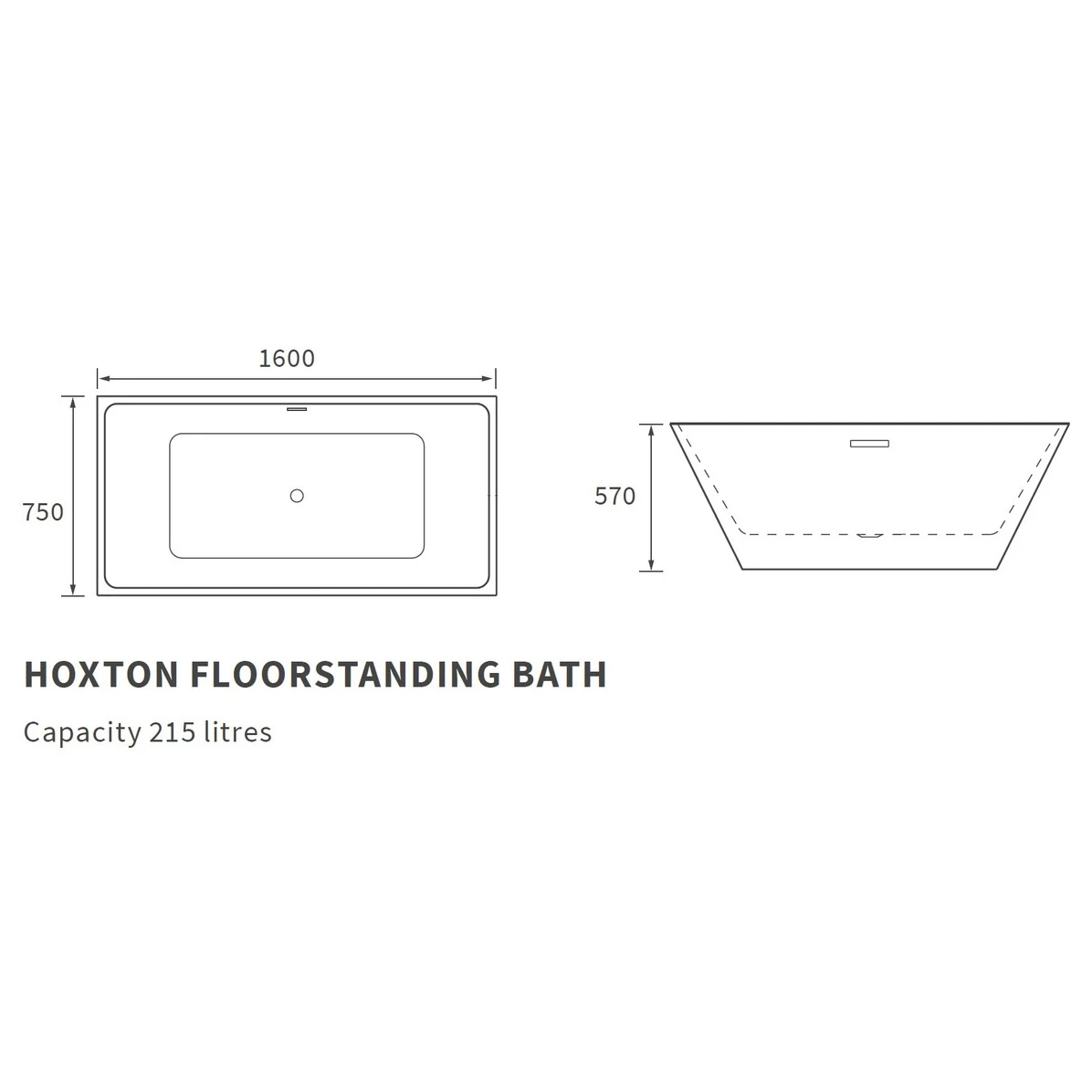Honour Freestanding 1600x750x570mm Bath