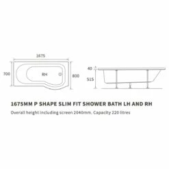P-Shape Slim Fit 1675mm 0 Tap Hole Shower Bath Right Hand