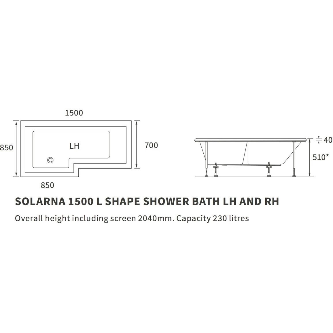 Solarna L Shape 1500x700mm Left Hand Shower Bath Pack