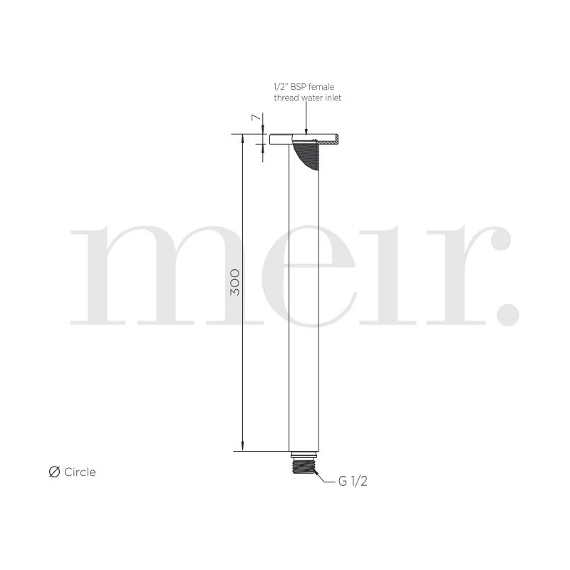 Round Ceiling Shower Arm 300mm, PVD Brushed Nickel finish