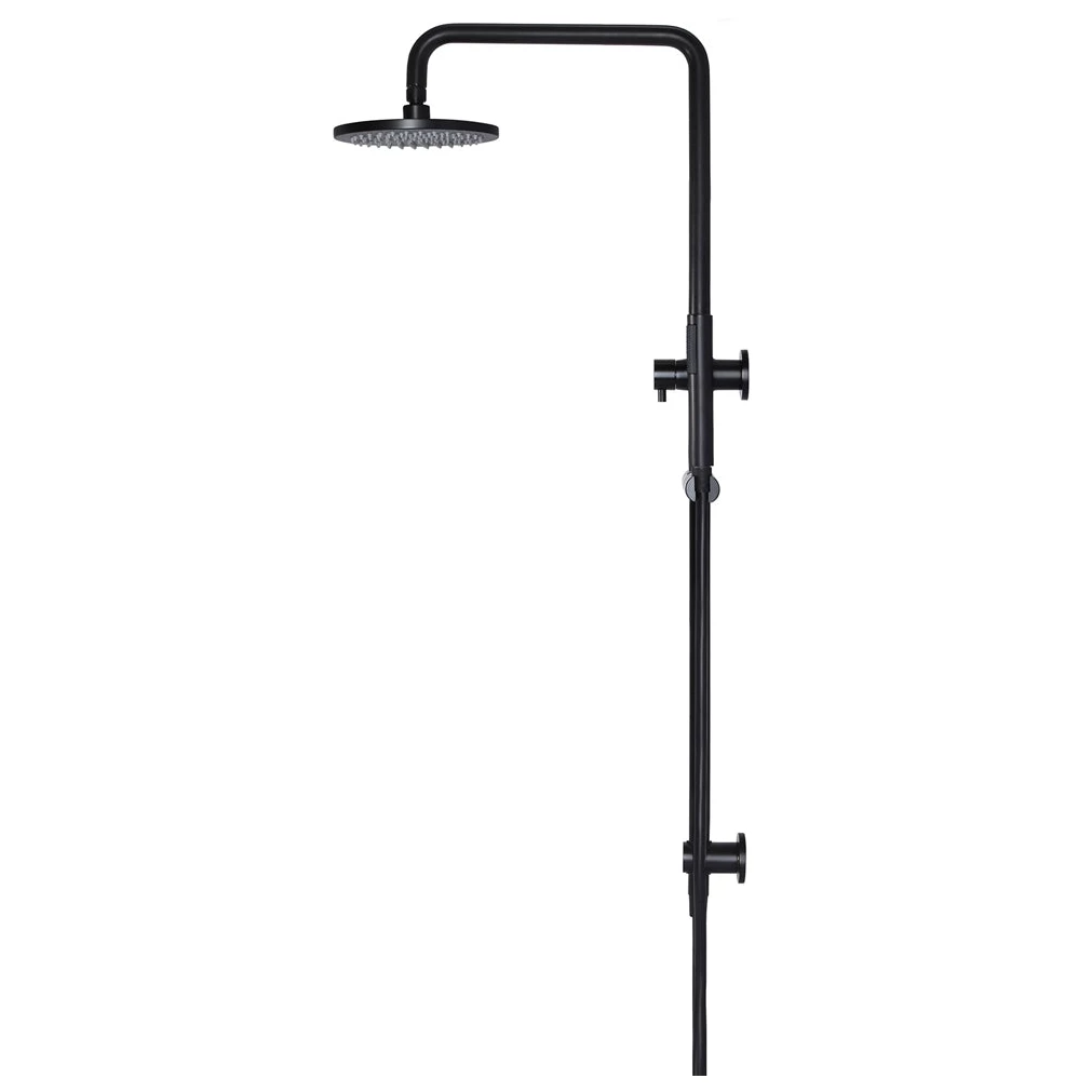 Round Combination Shower Rail with 200mm Head and Single Function Hand Shower, Matte Black finish