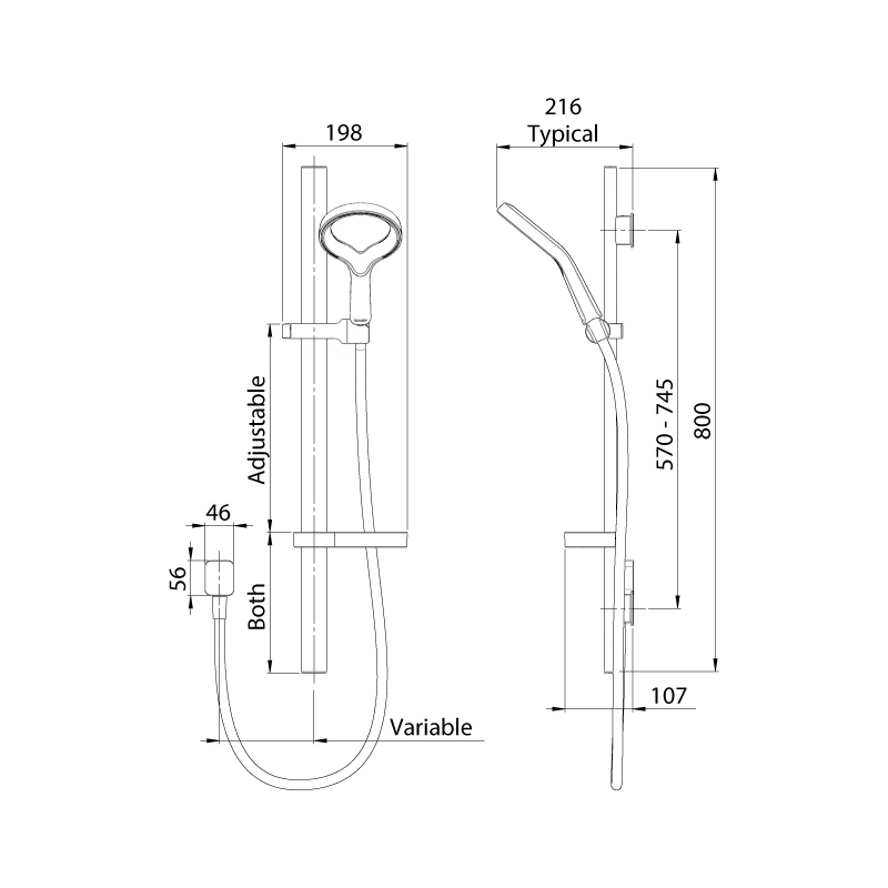 Aio Aurajet Rail Shower with Chrome Handset