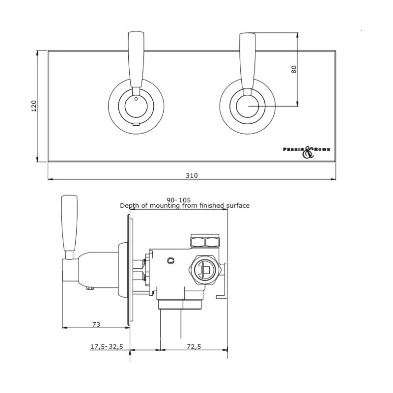 Contemporary Concealed Thermostatic Shower Mixer and Shut-Off with Lever Handles