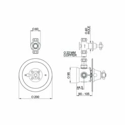 Georgian Concealed Thermostatic Shower with Remote Flow Control and Cross Handles, Chrome