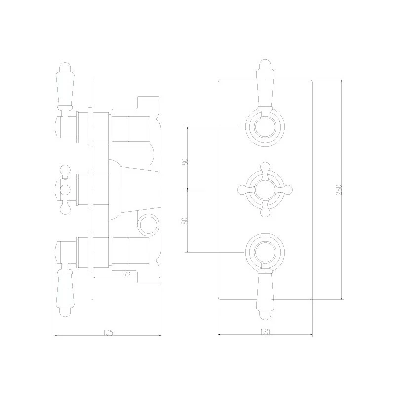 Victorian Triple Thermostatic Shower Valve