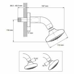 Chrome plated fixed shower with swivel head for connection to concealed pipework