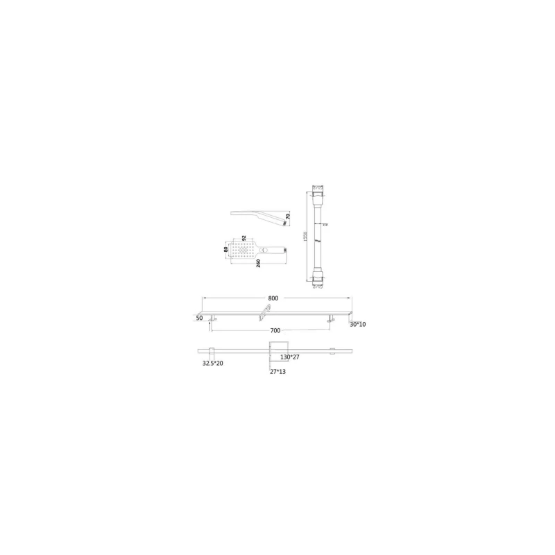 Square Slide Rail Kit with 3 Function Head
