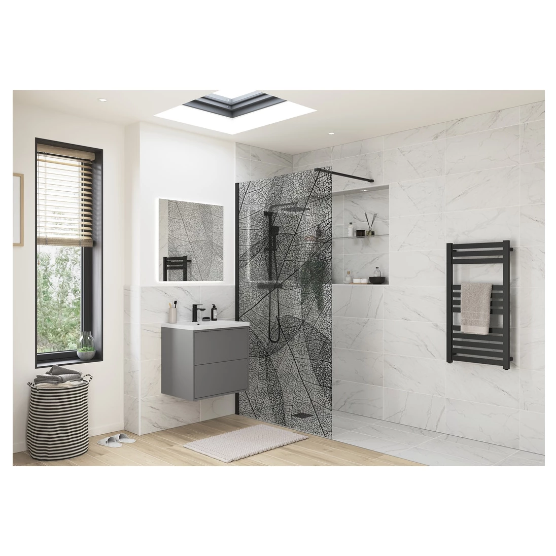 Refresh Wesley Black Leaf Design Wetroom Panel, 1200mm