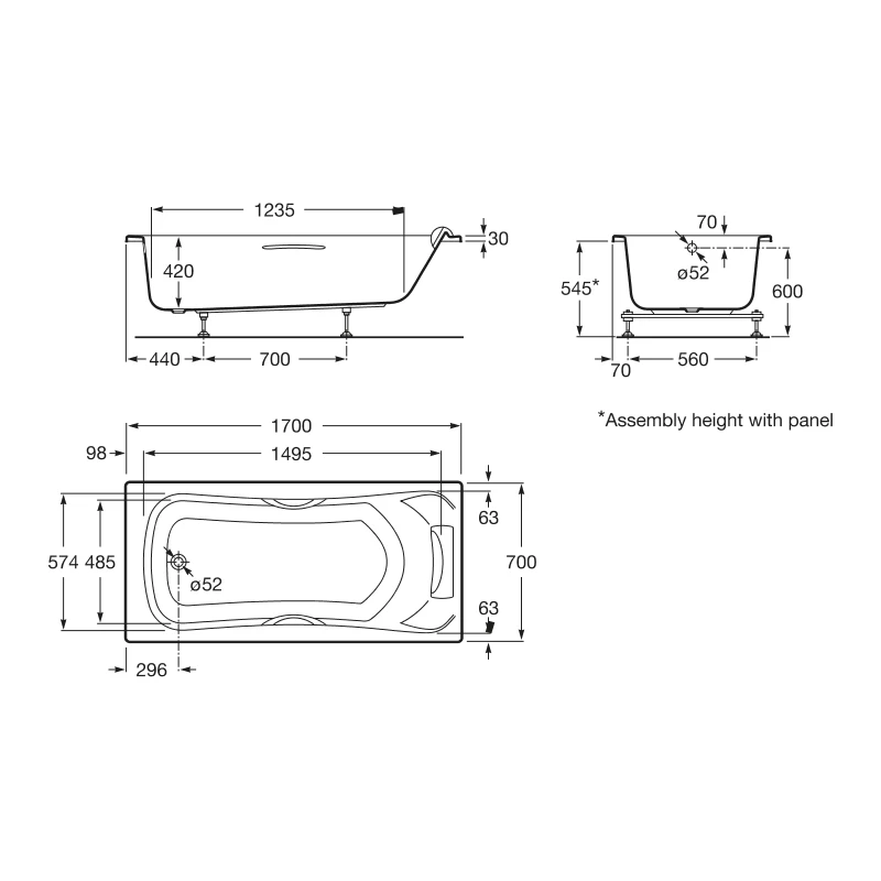 Length: 1700mm, Width: 700mm, Height: 420mm