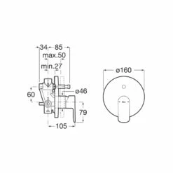 Carla Steel bath 1600 x 700mm without anti-slip, excluding legs and grips 2 tapholes