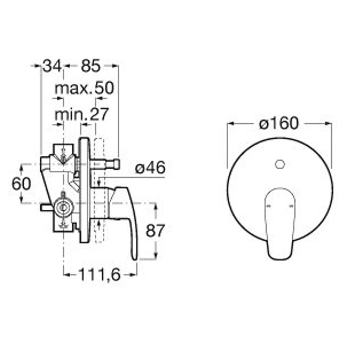 Monodin-N Built-In Bath-Shower Mixer (2 Outlets)