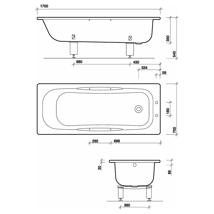 • This 1700 x 700mm bath offers all the benefits of the standard size celtic steel bath but with a water saving capacity of only 140 litres to the overflow