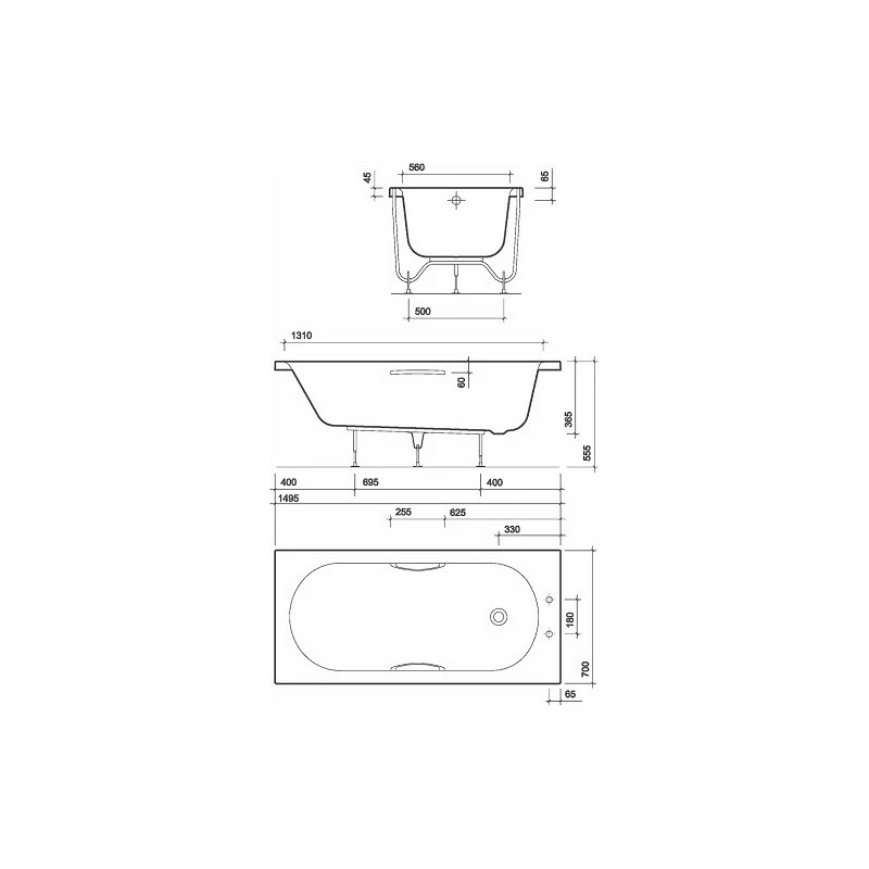 Opal Bath, 1500×700, No Tap Hole, No Grip