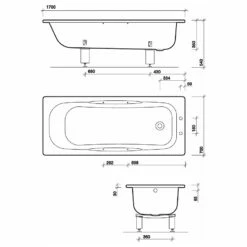 Opal Bath, 1700×700, 2 Tap Holes, No Grip