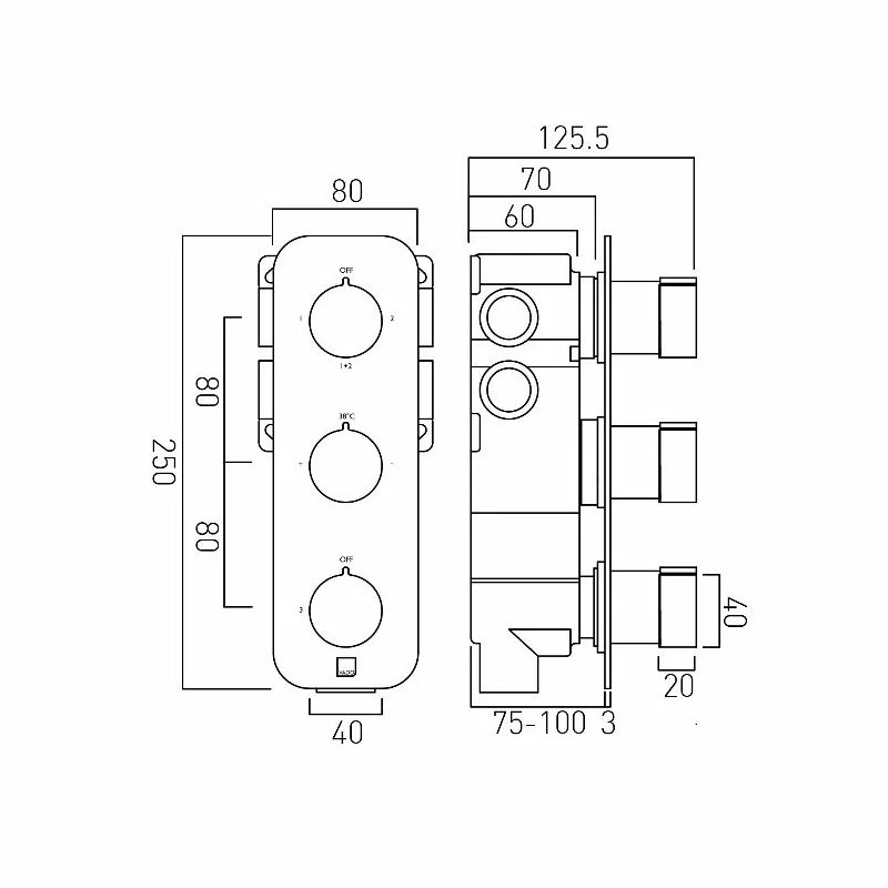 Altitude Tablet 3 Outlet, 3 Handle Vertical Concealed Thermostatic Shower Valve with All-Flow Function