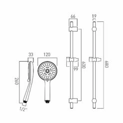 Ceres 3 Function Self-Cleaning Slide Rail Shower Kit