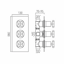 Elements concealed 2 outlet 3 handle thermostatic shower valve