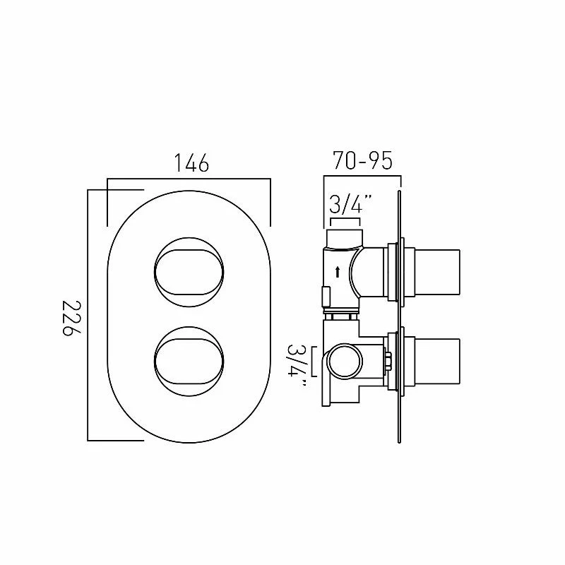 Life Concealed 1 Outlet, 2 Handle Thermostatic Valve