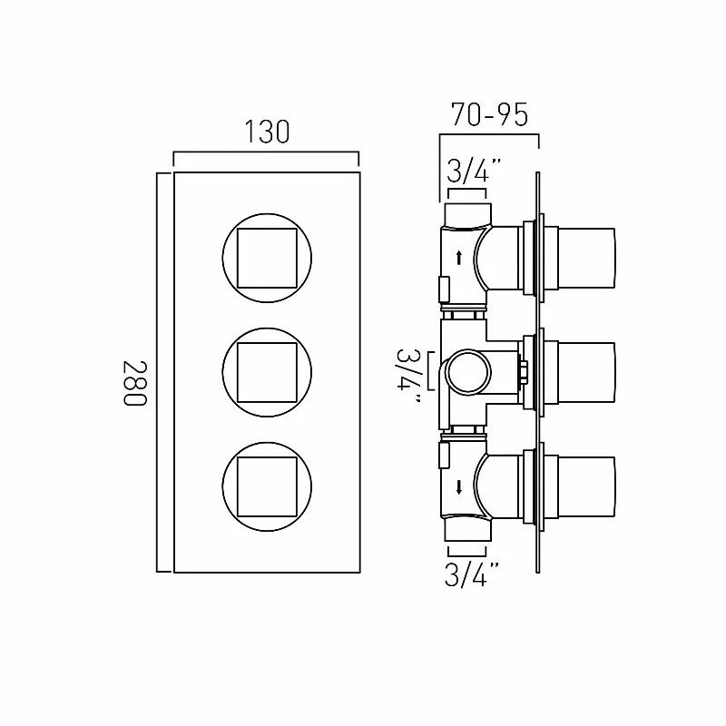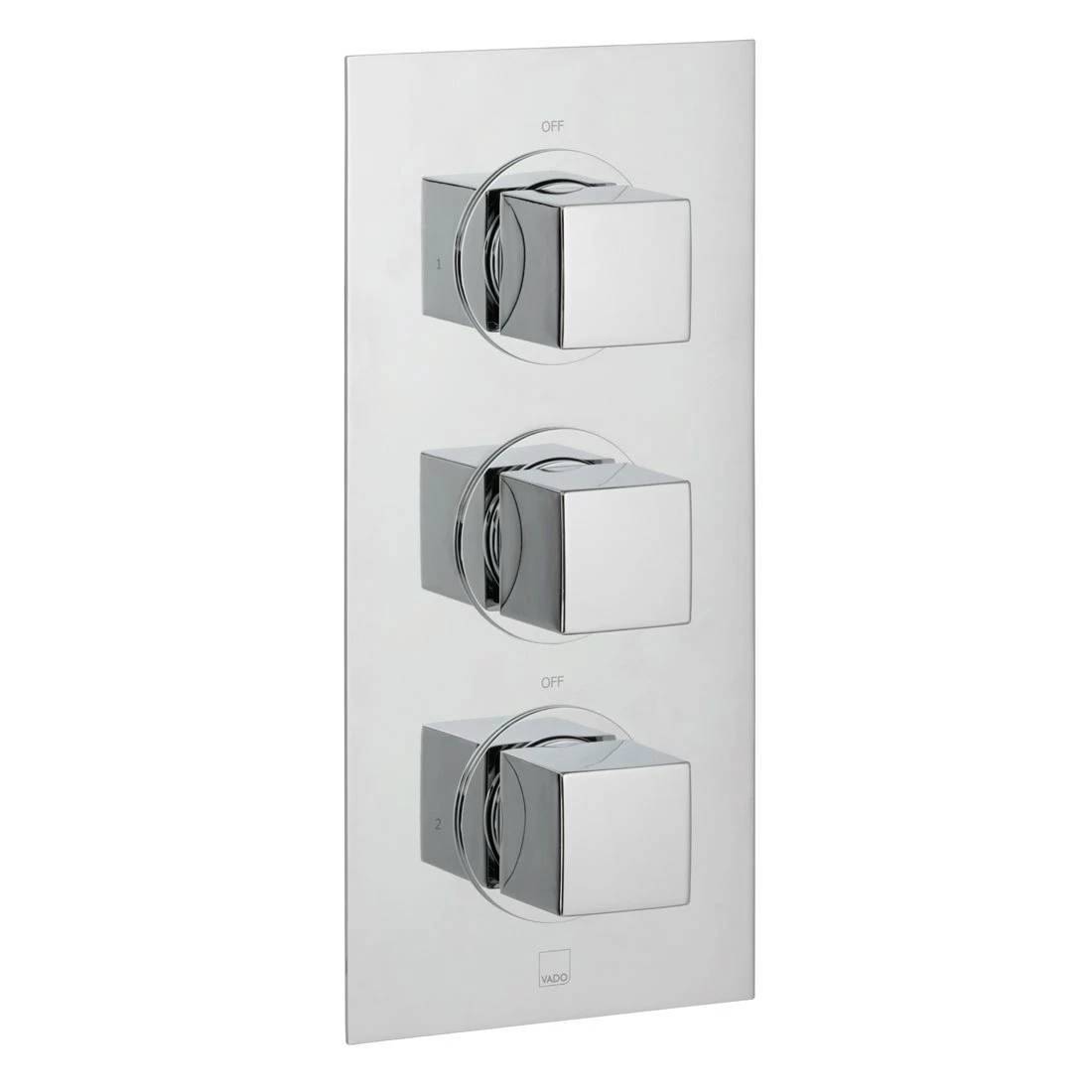 Mix 2 Outlet Thermostatic Valve 2 Outlet, 3 Handle Thermostatic Valve Chrome